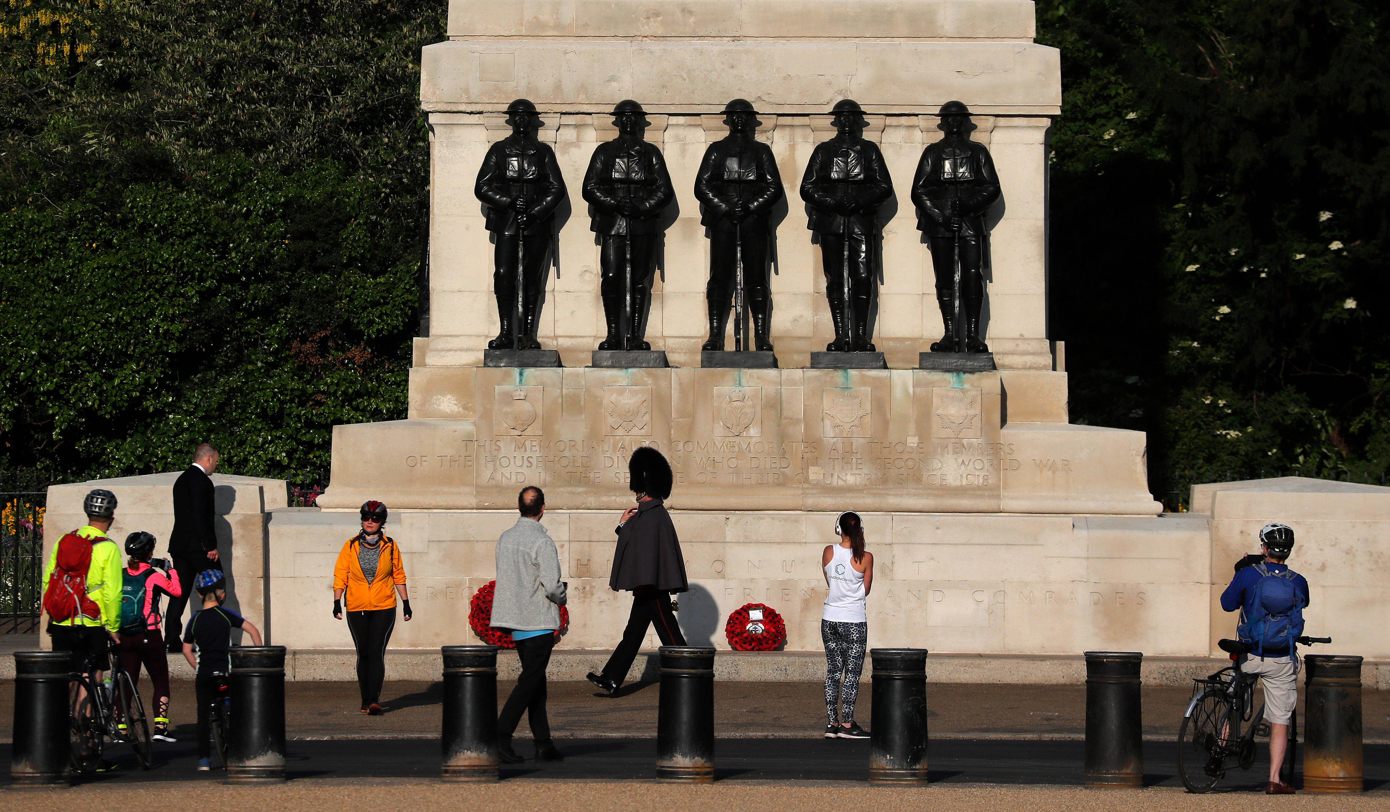 | The Red Arrows fly over an empty central London to celebrate the 75th anniversary of VE Day. |