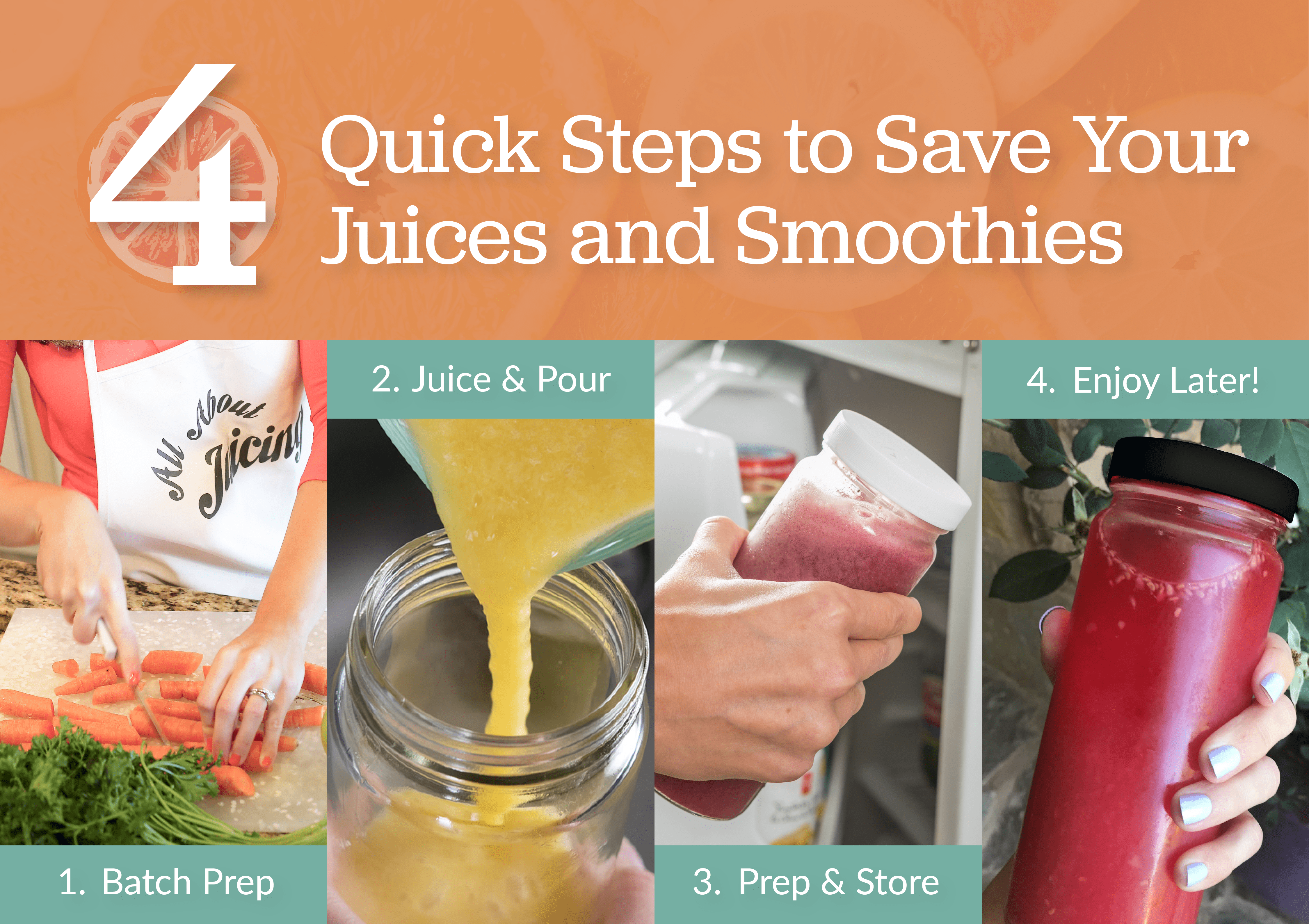 I get this question all the time, and I thought you might have this question, too! So, I put together 4 quick steps to save your juices and your smoothies.