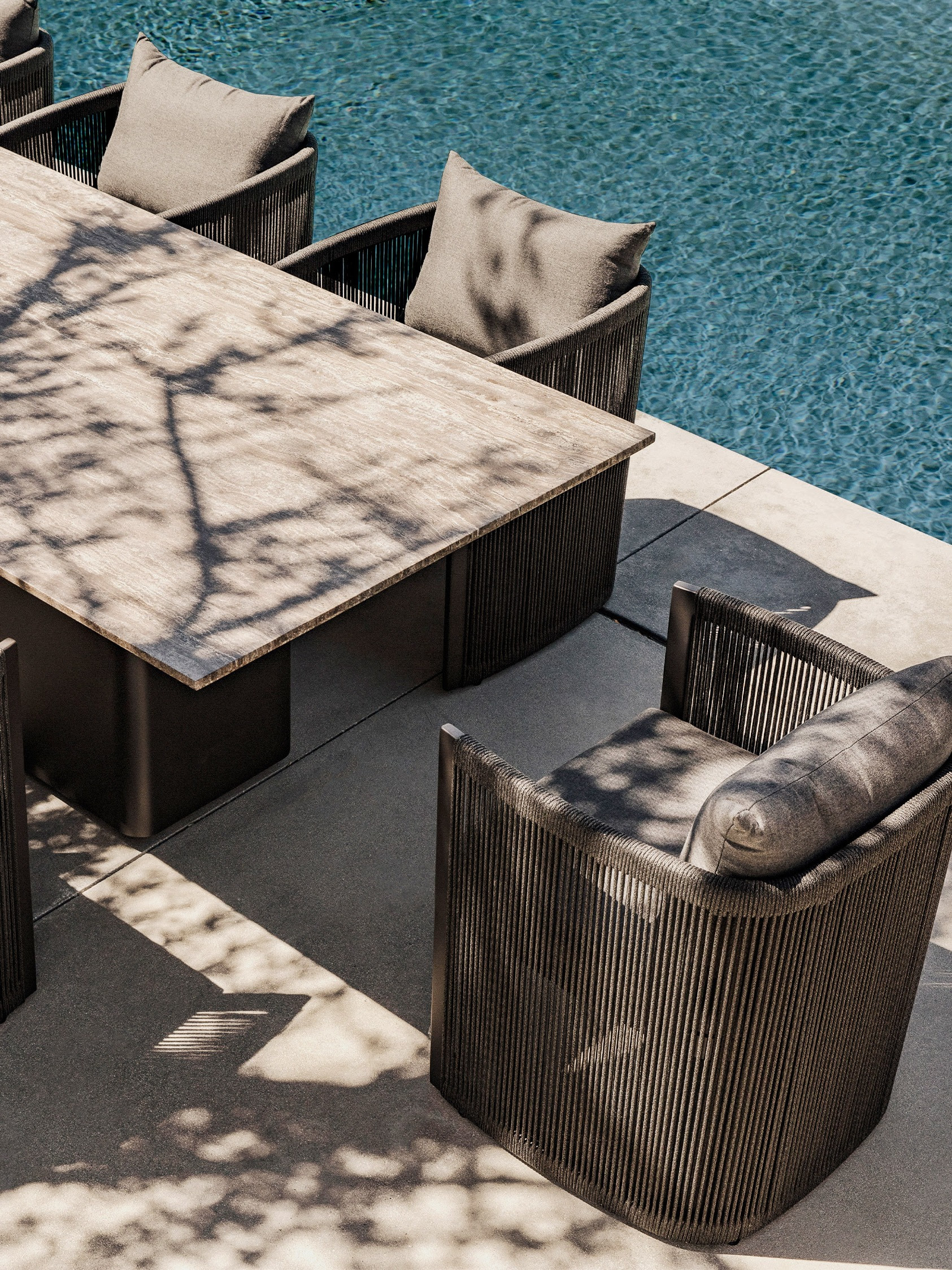 Indulge in the supreme comfort of our Antigua Collection living pieces, all adorned with low modern seating. This exceptional outdoor living set comprises a spacious 3-seat sofa, a cozy lounge chair, versatile customizable sectional pieces, and elegant occasional tables. | | Crafted in powder coated extruded aluminum in Asteroid or Taupe, the subtle curved back of our Antigua Dining Chair with a unique rope design available in Dark or Light Grey is designed to hug for total comfort — but the included back and seat cushion in a range of neutral hues take comfort to the next level. | | Unwind in style with our Antigua Pool Designs. The Sun Lounge, adorned with subtle details and a hinged lounge cushion, invites relaxation by the pool. Meanwhile, the Daybed elevates comfort to the next level, featuring an enormous cushion for luxurious lounging. | | | | |