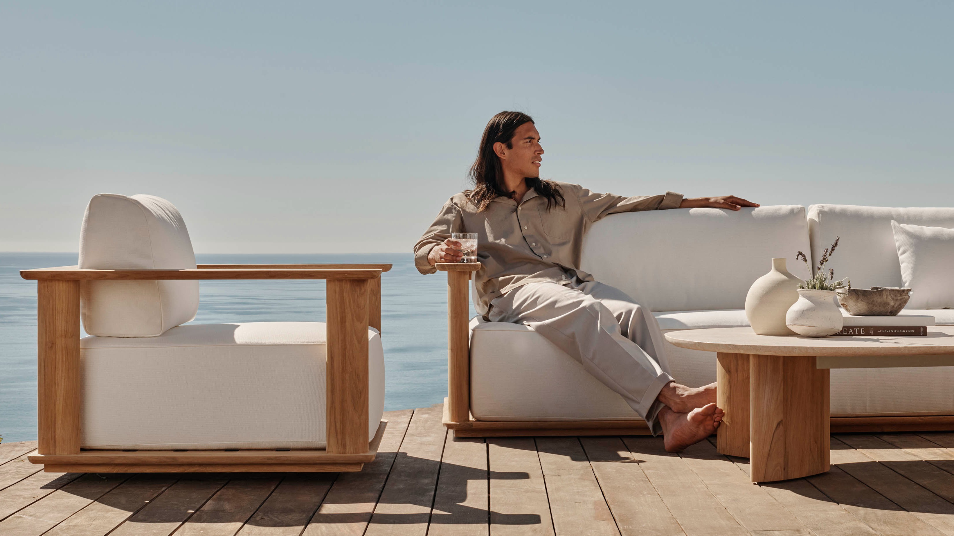 Crafted with sustainably sourced A-grade teak and featuring striking oval-shaped legs, indulgent deep seating, and expansive flat arms, each piece in this collection embodies the epitome of coastal chic. | | | | |