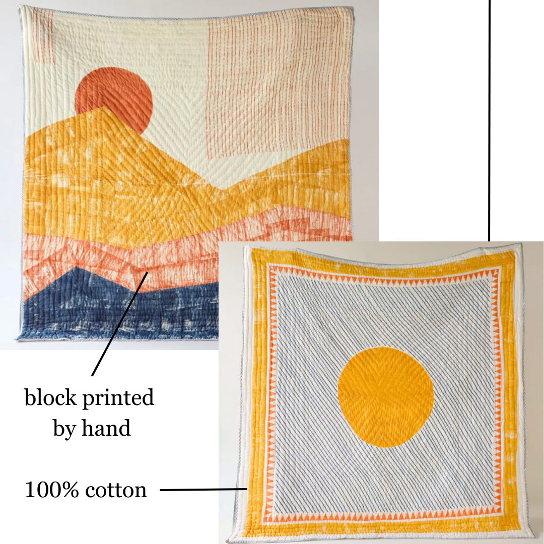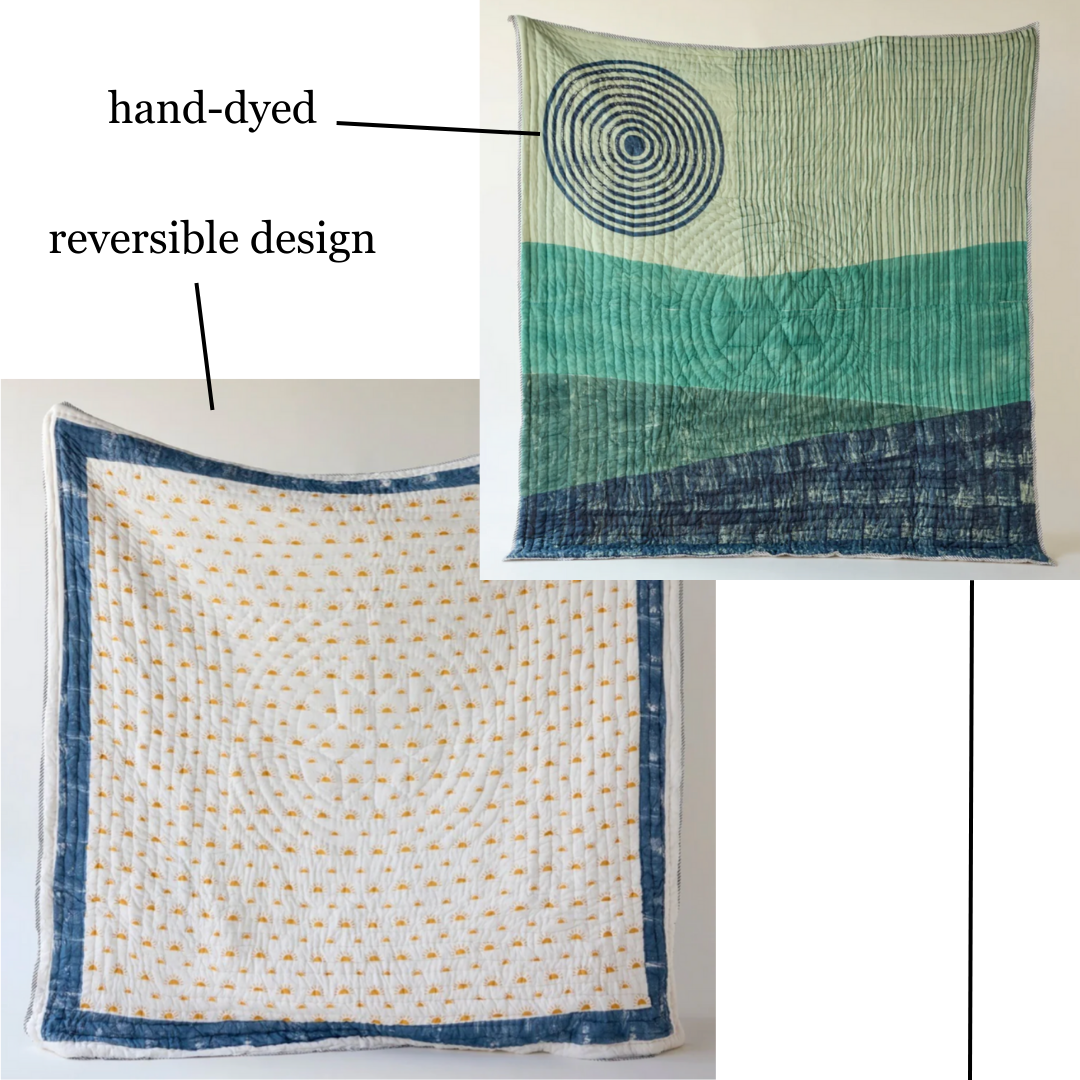 Our latest arrivals are a joyful burst of calming colors in our signature plush cotton. | | The Ojai quilt was designed with versatility in mind. Effortlessly switch between soothing teal tones and subtle sunrises. | | Our Ouray quilt is a celebration of color and modern design. The uniqueness of every piece shines through each block of dye as a reminder of the hands that pressed them. | | As always, each new item provides a meal for a hungry child in India. Thank you so much for your continued support! | | | | |