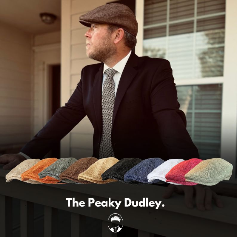 One of our most popular caps, year round, but especially for warmer days. The Peaky Dudley Cap embodies the vintage style of the flat cap mixed with Peaky Legend, while exuding the sense of class and individualism that makes you stand out in a crowd. Now with the TWO most requested NEW COLORS! | | The material is a linen/poly blend, purposely selected to make one of the most breathable, durable, and easy to maintain caps on the market. It's incredibly forgiving, easy to shape and simple to clean (just use water, water won't hurt this cap). This cap is great for warm weather, does not have a liner, handles sweat like a boss, and doesn't cook your dome. The material is more like mesh (not a fabric), wear in the pool, on the golf course, at the ballpark, working in the yard, or at your local pub. It can do it all. STAY PEAKY. 👊 | | | | |