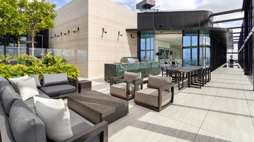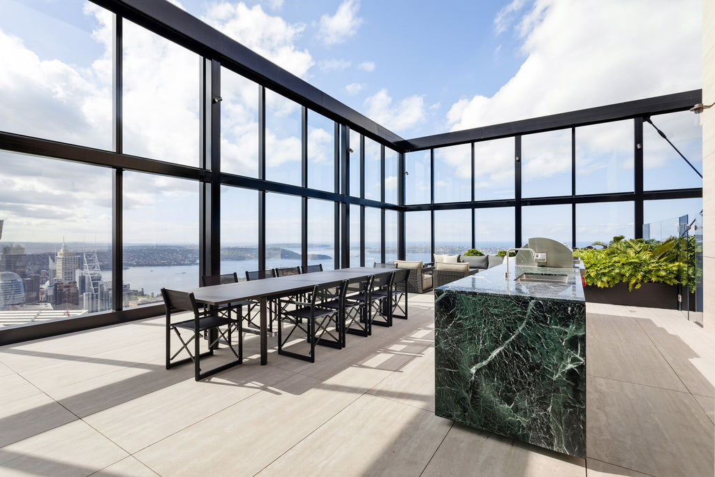 One of Sydney's most prestigious addresses, the King Penthouse on Bathurst Street, beautifully features Harbour's designs against a backdrop of the 360-degree Sydney skyline while overlooking the iconic Sydney Harbour. The penthouse spans two floors and embodies urban sophistication, with expansive outdoor areas showcasing Harbour's collections in all their glory.