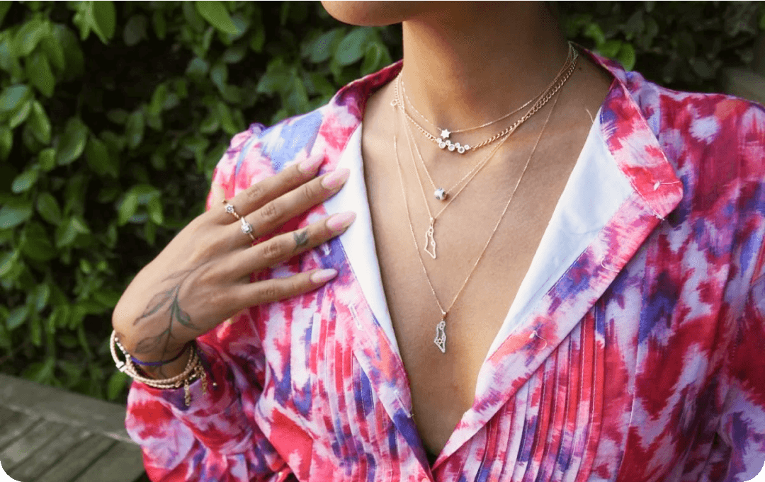 | Stunning necklace combinations | | | | | | | | | | | | Mix Lengths | | | | Start with a choker, add a mid-length piece, then finish with a long pendant. Varying lengths create visual interest and prevent tangling. | | | | | | | | | | | | | | | | | | Play with Textures | | | | Combine different chain styles - pair a delicate chain with a chunky one. Mix metals for added depth and dimension to your look. | | | | | | | | | | | | | | | | Balance Your Pendants | | | | If using multiple pendants, vary their sizes. Place larger pieces lower and smaller ones higher to create a balanced, cohesive look. | | | | | | | | | | | | | | | | Consider Your Neckline | | | | Choose necklace lengths that complement your outfit's neckline. V-necks work well with a pendant, while turtlenecks suit longer layers. | | | | | | | | | | | | | | | | | | Tell Your Story | | | | Include meaningful pieces in your layers. Mix your Hamsa for protection with your Chai for life, creating a personal, symbolic stack. | | | | | | | | | | | | | | | | | | | | | | | | Over 10,000+ Happy Customers | | | | | | | | | | | | | | | | | | | | Shop With Confidence | | | | | | | | | Let's Connect: 818-882-9030 | | | | | | | | | | | | | | | | | | Alef Bet Jewelry by Paula Our mailing address is: P.O. Box 3974 Los Angeles, California 91313 | | | | | | | | | |