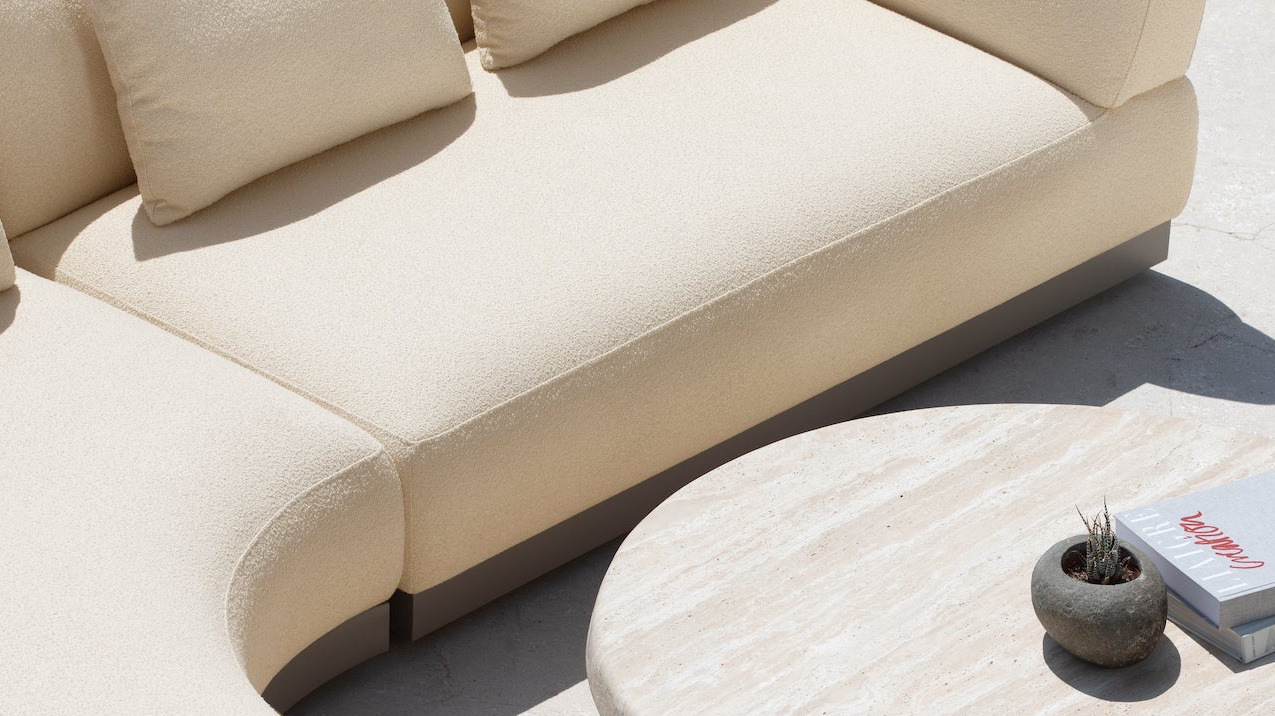 Clean lines and subtle curved details define this luxury contemporary collection that's stocked in outdoor Italian bouclé — the first of its kind in the marketplace. | | | | |