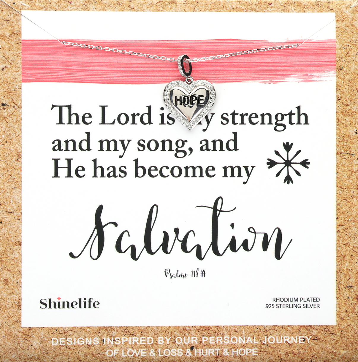 Hope Heart Necklace We all need hope at some point in our lives. You cannot go through life without encountering hard times, but there is hope found in the Lord. It is He that holds us up when we want to simply give up and fall down. Psalms 118:14, "The LORD is my strength and my song, and He has become my salvation." | | | | |