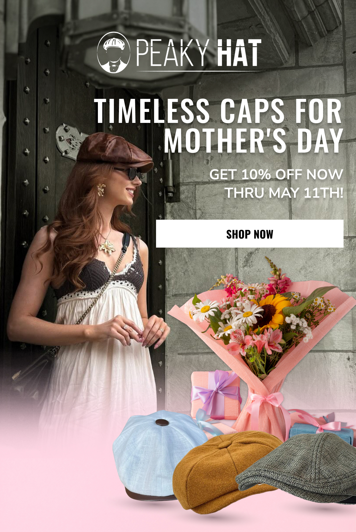 Made to Mean Something Peaky Hat is more than a look—it's a story you wear. Inspired by heritage, designed for the present, and built to last, every hat we create carries character, craftsmanship, and connection. From premium materials to signature silhouettes, each piece is made with intention—to elevate your everyday, mark a moment, or honor a memory. Whether you're starting a new tradition or living out an old soul's dream, Peaky Hat is where classic spirit meets personal style. Promotional Terms & Conditions All promotional offers are available for a limited time only, as noted. Offers cannot be combined with other discounts or applied to past purchases. Promotions hold no cash value and cannot be exchanged for cash or credit. Items marked Final Sale are not eligible for return, refund, or exchange. All returns and exchanges must comply with Peaky Hat's standard return policy. We reserve the right to update or withdraw promotions at any time without prior notice. Availability and pricing are subject to change based on inventory or other unforeseen circumstances. Peaky Hat | 5806 West War Memorial Drive, Unit B, Peoria, Illinois 61615 You're receiving this email because you opted in for updates, offers, and curated experiences from Peaky Hat. | | Made to Mean Something Peaky Hat is more than a look—it's a story you wear. Inspired by heritage, designed for the present, and built to last, every hat we create carries character, craftsmanship, and connection. From premium materials to signature silhouettes, each piece is made with intention—to elevate your everyday, mark a moment, or honor a memory. Whether you're starting a new tradition or living out an old soul's dream, Peaky Hat is where classic spirit meets personal style. Promotional Terms & Conditions All promotional offers are available for a limited time only, as noted. Offers cannot be combined with other discounts or applied to past purchases. Promotions hold no cash value and cannot be exchanged for cash or credit. Items marked Final Sale are not eligible for return, refund, or exchange. All returns and exchanges must comply with Peaky Hat's standard return policy. We reserve the right to update or withdraw promotions at any time without prior notice. Availability and pricing are subject to change based on inventory or other unforeseen circumstances. Peaky Hat | 5806 West War Memorial Drive, Unit B, Peoria, Illinois 61615 You're receiving this email because you opted in for updates, offers, and curated experiences from Peaky Hat.