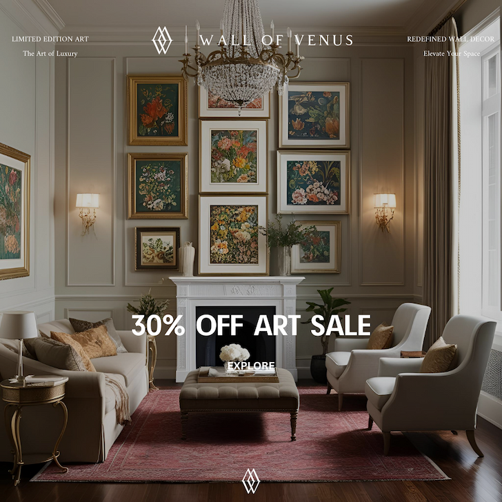MONDAY, MAY 26, 2025 | ISSUE 25.52 | | 30% OFF MEMORIAL DAY SALE This Memorial Day, bring meaning and beauty into your home with our 30% Off. Your walls deserve better and now is the perfect time to refresh your space. Each piece is limited and once gone, will never be available again! | | A Collector's Review "Great Product! Not only was I incredibly happy with the piece of art, but the customer service was top notch! There was a slight imperfection with the matting and a new piece arrived quickly. So easy to exchange!" - Erin | | What Are WE LISTENING TO? Gallery Playlist This is what we have playing at the gallery. Go ahead and take a listen. | | | | Elevate Your Space, Elevate Your Life Art breathes meaning and life into our spaces, it's a reflection of who we are, a daily source of inspiration. It captures the beauty of the world and reminds us of the stories worth telling. | | Wall of Venus. 869 East 2500 South, #314 Salt Lake City, UT, 84107 | | | | |