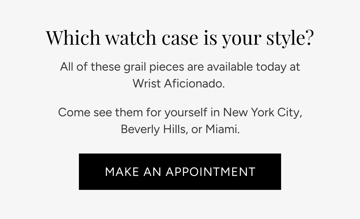 STORES New York Location 19 E 62nd St. New York New York, NY 10065 Beverly Hills Location Waldorf Astoria Hotel 9850 Wilshire Blvd Beverly Hills, CA 90210 Miami Location Setai Hotel Miami Beach 2001 Collins Ave Miami Beach, FL 33139 | | © Wrist Aficionado 2024. All Rights Reserved. | | | | |