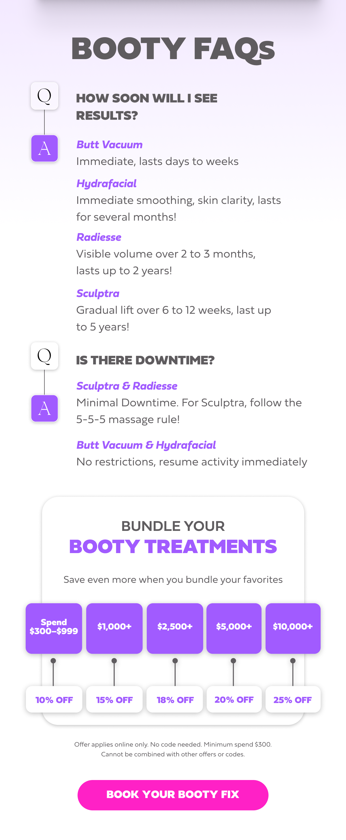 Compare the most popular treatments side by side and see which glow-up is right for your goals. | | | | |