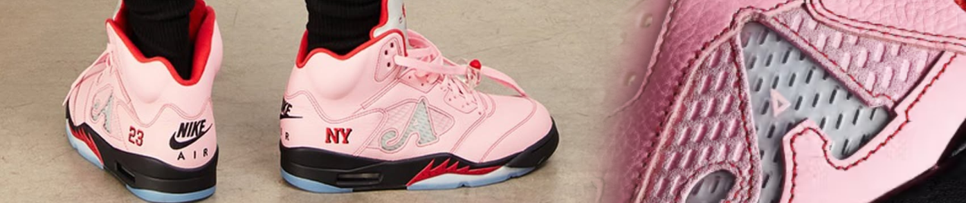 AWAKE NY X AIR JORDAN 5 ARCTIC PINK | | Inspired by the Awake NY x Air Jordan 5 collaboration, our new collection combines urban attitude with bold style. Arctic pink hues and iconic details reflect authenticity and energy in every piece. | | | | |