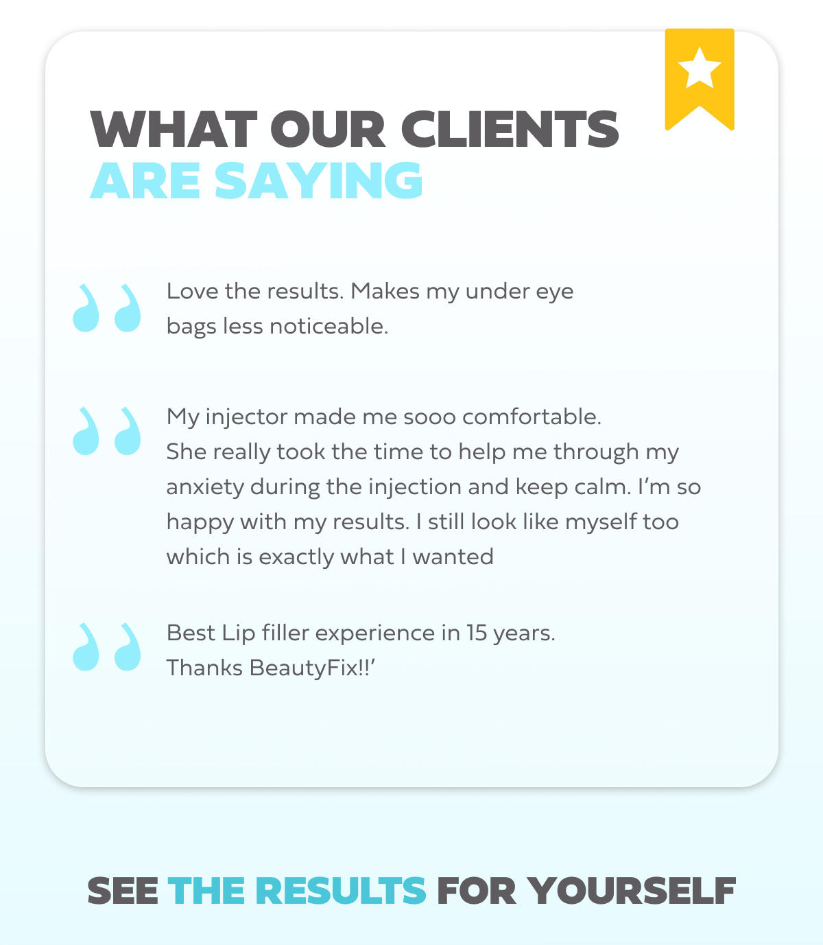 That's why every BeautyFix transformation is designed with precision, artistry and your unique features in mind. | | | | |