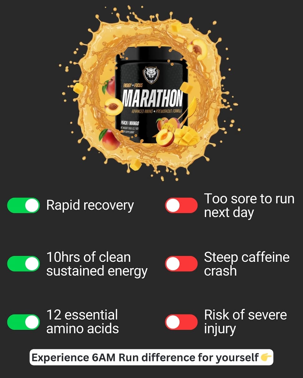 6AMRun is BUILT Different.. Because Runners ARE Different! | | Enhance Your Recovery and Reduce Downtime! We often hear from runners eager to increase their weekly mileage without sacrificing their well-being. The secret isn't to push harder; it's to recover smarter! Enhance Your Recovery and Reduce Downtime 1. Prioritize Rest and Nutrition Ensure you're getting quality sleep and maintaining a balanced diet to support muscle repair. 2. Hydrate and Refuel Keep your body well-hydrated and refuel with nutrients post-run. 3. Optimize Your Recovery with 6AMRun Our unique formulas are developed to expedite recovery and reduce muscle soreness, allowing you to lace up and hit the pavement more frequently. 4. Incorporate Active Recovery Days Intersperse runs with low-intensity activities to prevent overuse injuries. Why Choose 6AMRun? Our products provide the essential support to rejuvenate muscles and recharge energy levels, paving the way for more productive training days. If you haven't tried our formulas yet, now's the perfect time to discover how 6AMRun can transform your recovery routine, helping you maximize your potential. Stay strong, 6AMRun community, and let's keep those goals in sight! | | The ultimate runner's bundle, built to fuel every step of your run. | | | | |