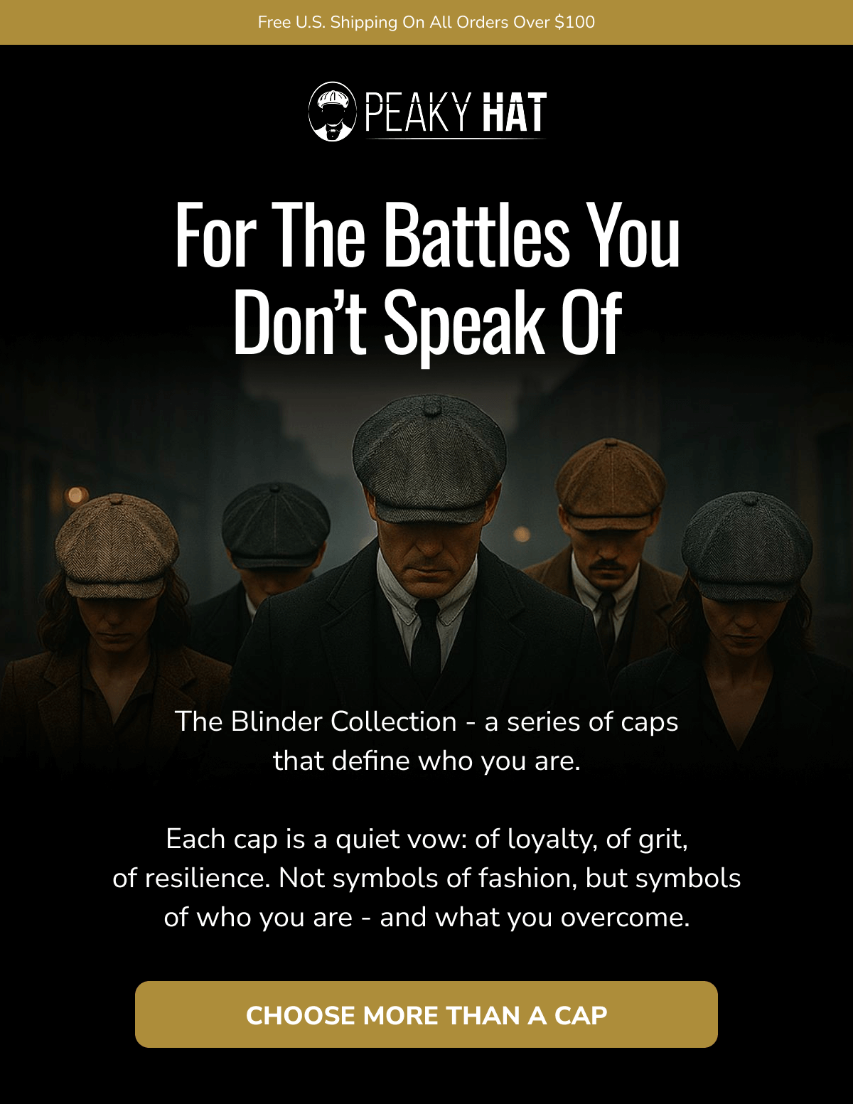 Made to Mean Something: Peaky Hat is more than a look - it's a story you wear. Inspired by heritage, designed for the present, and built to last, every hat we create carries character, craftsmanship, and connection. From premium materials to signature silhouettes, each piece is made with intention - to elevate your everyday, mark a moment, or honor a memory. Whether you're starting a new tradition or living out an old soul's dream, Peaky Hat is where classic spirit meets personal style. Promotional Terms & Conditions: All promotional offers are available for a limited time only, as noted. Offers cannot be combined with other discounts or applied to past purchases. Promotions hold no cash value and cannot be exchanged for cash or credit. Items marked Final Sale are not eligible for return, refund, or exchange. All returns and exchanges must comply with Peaky Hat's standard return policy. We reserve the right to update or withdraw promotions at any time without prior notice. Availability and pricing are subject to change based on inventory or other unforeseen circumstances. Peaky Hat | 5806 West War Memorial Drive, Unit B, Peoria, Illinois 61615 You're receiving this email because you opted in for updates, offers, and curated experiences from Peaky Hat. No longer want to receive these emails? Unsubscribe. | | | | |