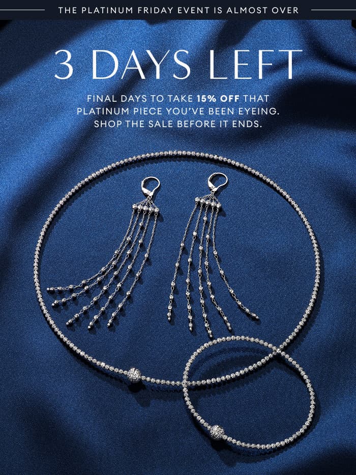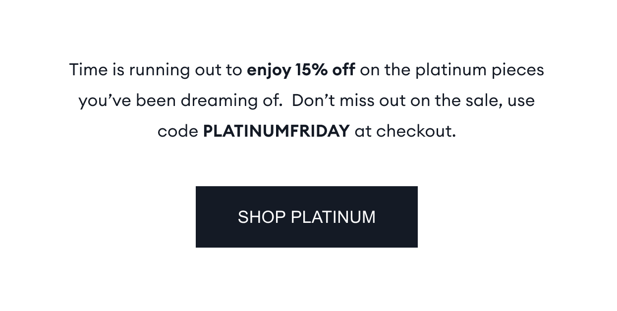 Time is running out to enjoy 15% off on the platinum pieces you've been dreaming of. Don't miss out on the sale, use code PLATINUMFRIDAY at checkout. |