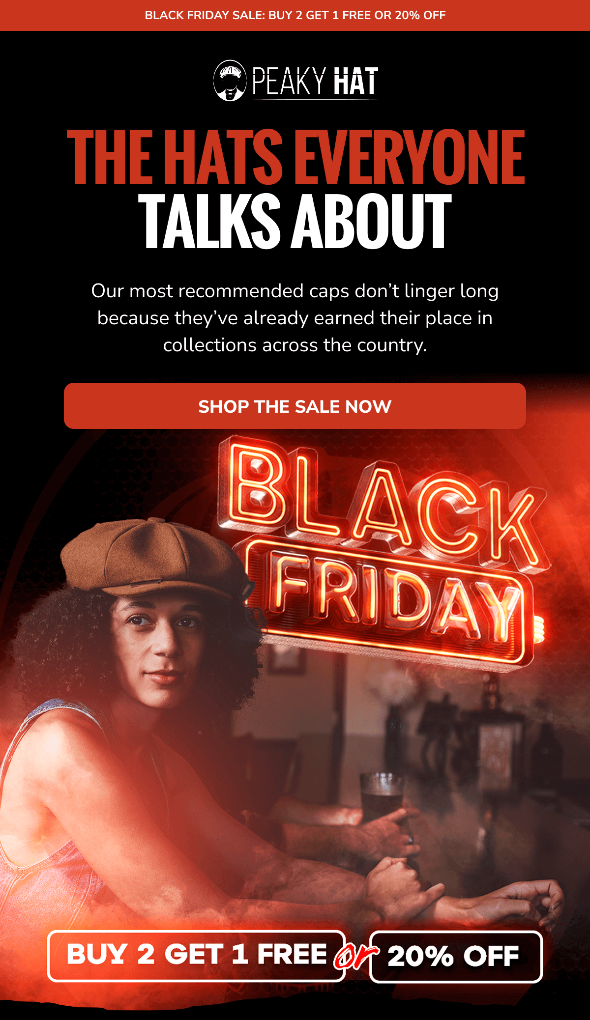 Made to Mean Something: Peaky Hat is more than a look - it's a story you wear. Inspired by heritage, designed for the present, and built to last, every hat we create carries character, craftsmanship, and connection. From premium materials to signature silhouettes, each piece is made with intention - to elevate your everyday, mark a moment, or honor a memory. Whether you're starting a new tradition or living out an old soul's dream, Peaky Hat is where classic spirit meets personal style. Promotional Terms & Conditions: All promotional offers are available for a limited time only, as noted. Offers cannot be combined with other discounts or applied to past purchases. Promotions hold no cash value and cannot be exchanged for cash or credit. Items marked Final Sale are not eligible for return, refund, or exchange. All returns and exchanges must comply with Peaky Hat's standard return policy. We reserve the right to update or withdraw promotions at any time without prior notice. Availability and pricing are subject to change based on inventory or other unforeseen circumstances. Peaky Hat | 5806 West War Memorial Drive, Unit B, Peoria, Illinois 61615 You're receiving this email because you opted in for updates, offers, and curated experiences from Peaky Hat. No longer want to receive these emails? Unsubscribe. | | | | |