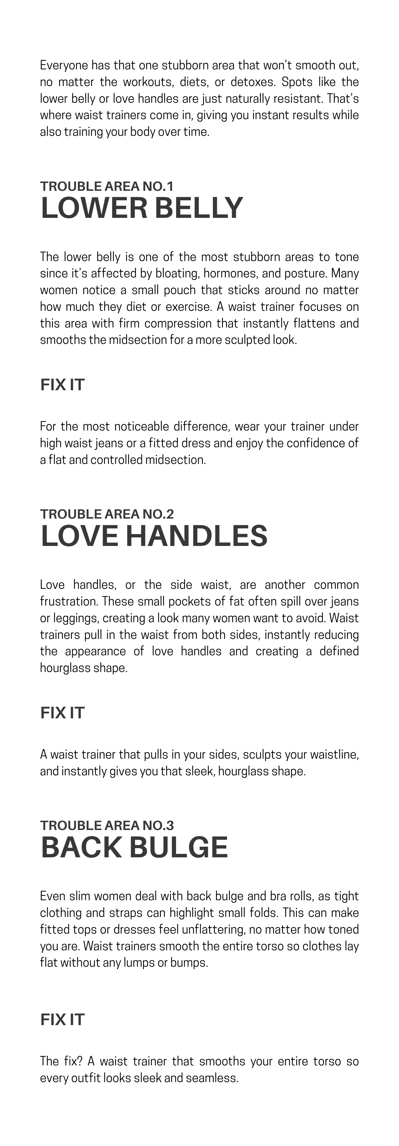 Inside, the triple-power design works its magic: ✔️ Hook-and-eye closures for a fully adjustable fit ✔️ Outer zipper for a flawless, smooth finish ✔️ Exclusive inner compression band that locks in your waist for maximum curve definition | | | | | Ultimate Accessories Pack | Perfect your silhouette and jump-start your summer body with this all-in-one package designed to help you sculpt, tighten, and tone like never before. Hand-picked by our waist training experts, this bundle includes everything you need to enhance your curves and speed up your results.