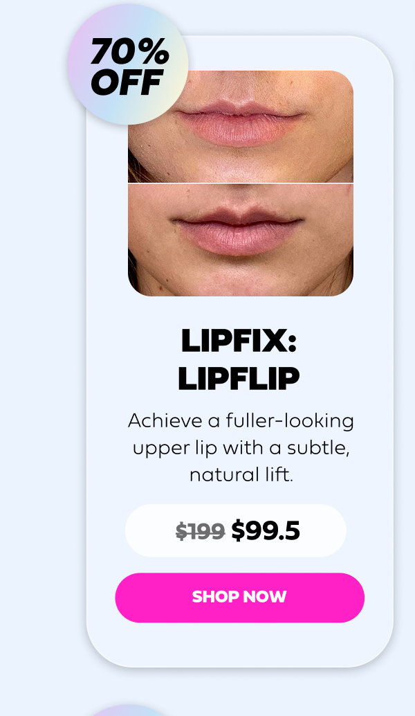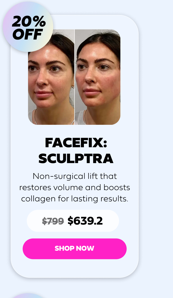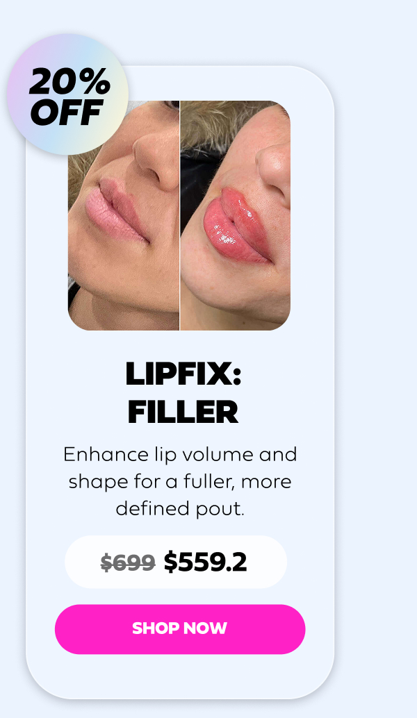 Hi beautiful, Ready to put your best face forward? Our Black Friday FaceFix sale is here! From plumper lips to flawless skin, we're offering up to 70% off on treatments that will make you look and feel like a million bucks, without breaking the bank. Whether you're dreaming of smoother skin, a perfectly defined jawline, or the ultimate refreshed look, we've got the FaceFix treatment just for you. Check out our best-sellers below, and let's get you glowing! | | | | |