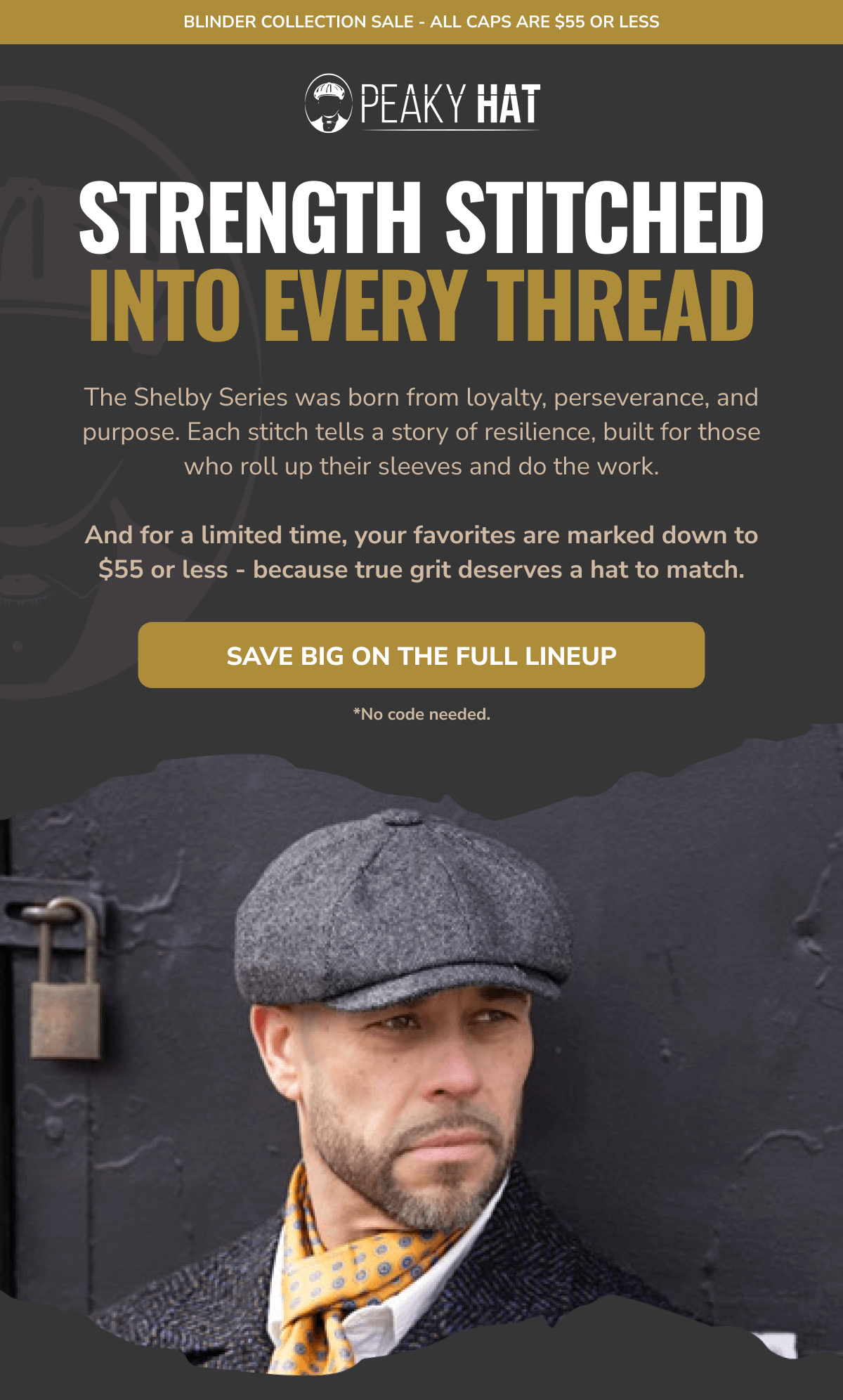 Made to Mean Something: Peaky Hat is more than a look - it's a story you wear. Inspired by heritage, designed for the present, and built to last, every hat we create carries character, craftsmanship, and connection. From premium materials to signature silhouettes, each piece is made with intention - to elevate your everyday, mark a moment, or honor a memory. Whether you're starting a new tradition or living out an old soul's dream, Peaky Hat is where classic spirit meets personal style. Promotional Terms & Conditions: All promotional offers are available for a limited time only, as noted. Offers cannot be combined with other discounts or applied to past purchases. Promotions hold no cash value and cannot be exchanged for cash or credit. Items marked Final Sale are not eligible for return, refund, or exchange. All returns and exchanges must comply with Peaky Hat's standard return policy. We reserve the right to update or withdraw promotions at any time without prior notice. Availability and pricing are subject to change based on inventory or other unforeseen circumstances. Peaky Hat | 5806 West War Memorial Drive, Unit B, Peoria, Illinois 61615 You're receiving this email because you opted in for updates, offers, and curated experiences from Peaky Hat. No longer want to receive these emails? Unsubscribe. | | | | |