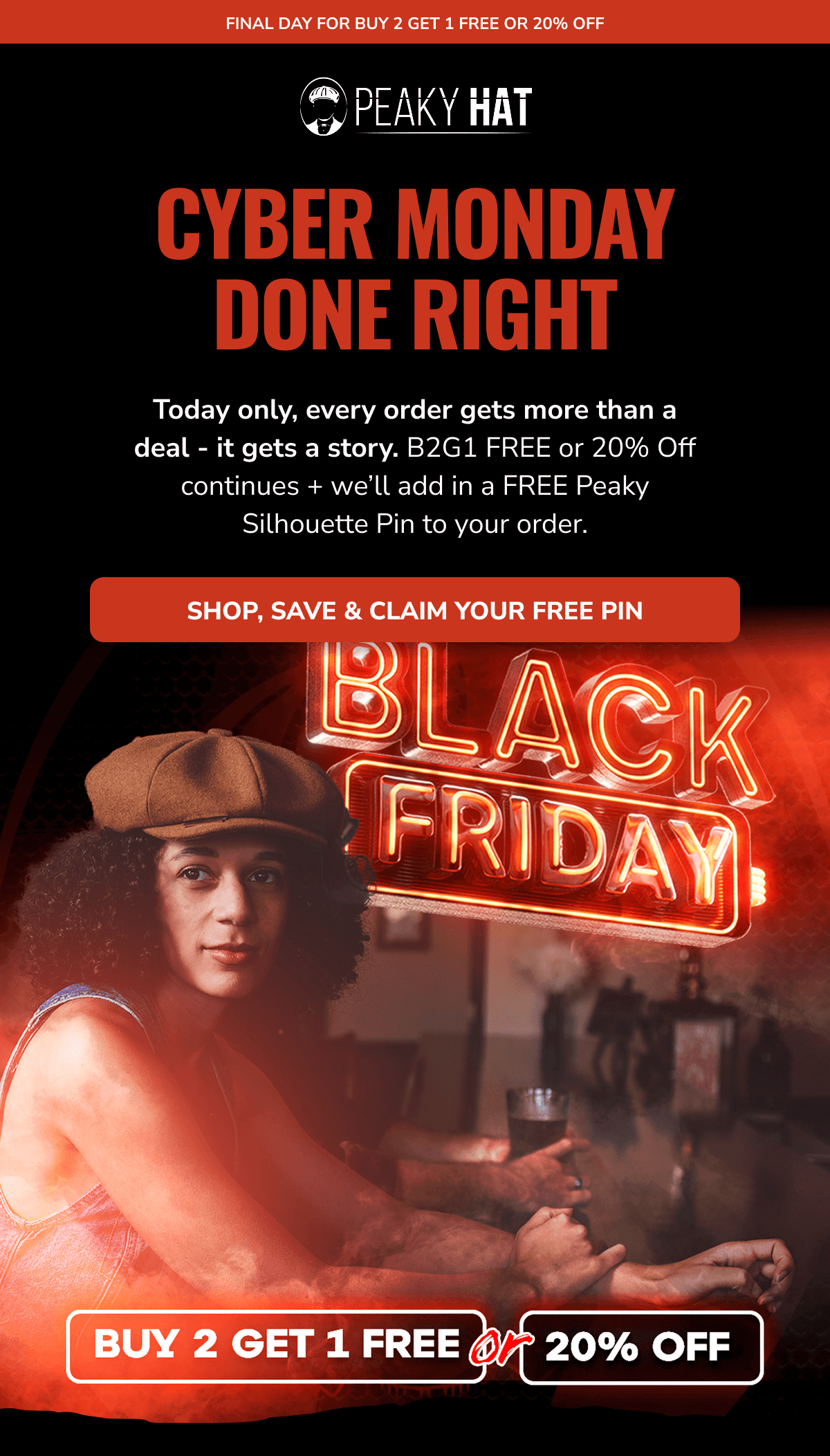 Made to Mean Something: Peaky Hat is more than a look - it's a story you wear. Inspired by heritage, designed for the present, and built to last, every hat we create carries character, craftsmanship, and connection. From premium materials to signature silhouettes, each piece is made with intention - to elevate your everyday, mark a moment, or honor a memory. Whether you're starting a new tradition or living out an old soul's dream, Peaky Hat is where classic spirit meets personal style. Promotional Terms & Conditions: All promotional offers are available for a limited time only, as noted. Offers cannot be combined with other discounts or applied to past purchases. Promotions hold no cash value and cannot be exchanged for cash or credit. Items marked Final Sale are not eligible for return, refund, or exchange. All returns and exchanges must comply with Peaky Hat's standard return policy. We reserve the right to update or withdraw promotions at any time without prior notice. Availability and pricing are subject to change based on inventory or other unforeseen circumstances. Peaky Hat | 5806 West War Memorial Drive, Unit B, Peoria, Illinois 61615 You're receiving this email because you opted in for updates, offers, and curated experiences from Peaky Hat. No longer want to receive these emails? Unsubscribe. | | | | |