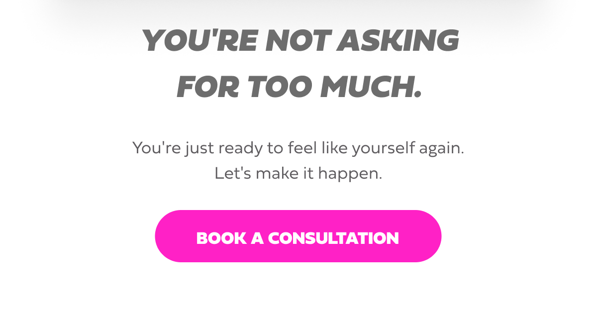 Hi beautiful, You're so close to feeling amazing. Almost confident. Almost there. But "almost" is exhausting. And you shouldn't have to live there. Whether it's fine lines making you look tired, lips that have lost fullness, or a body that doesn't reflect your effort, we can close that gap between "almost" and "absolutely."