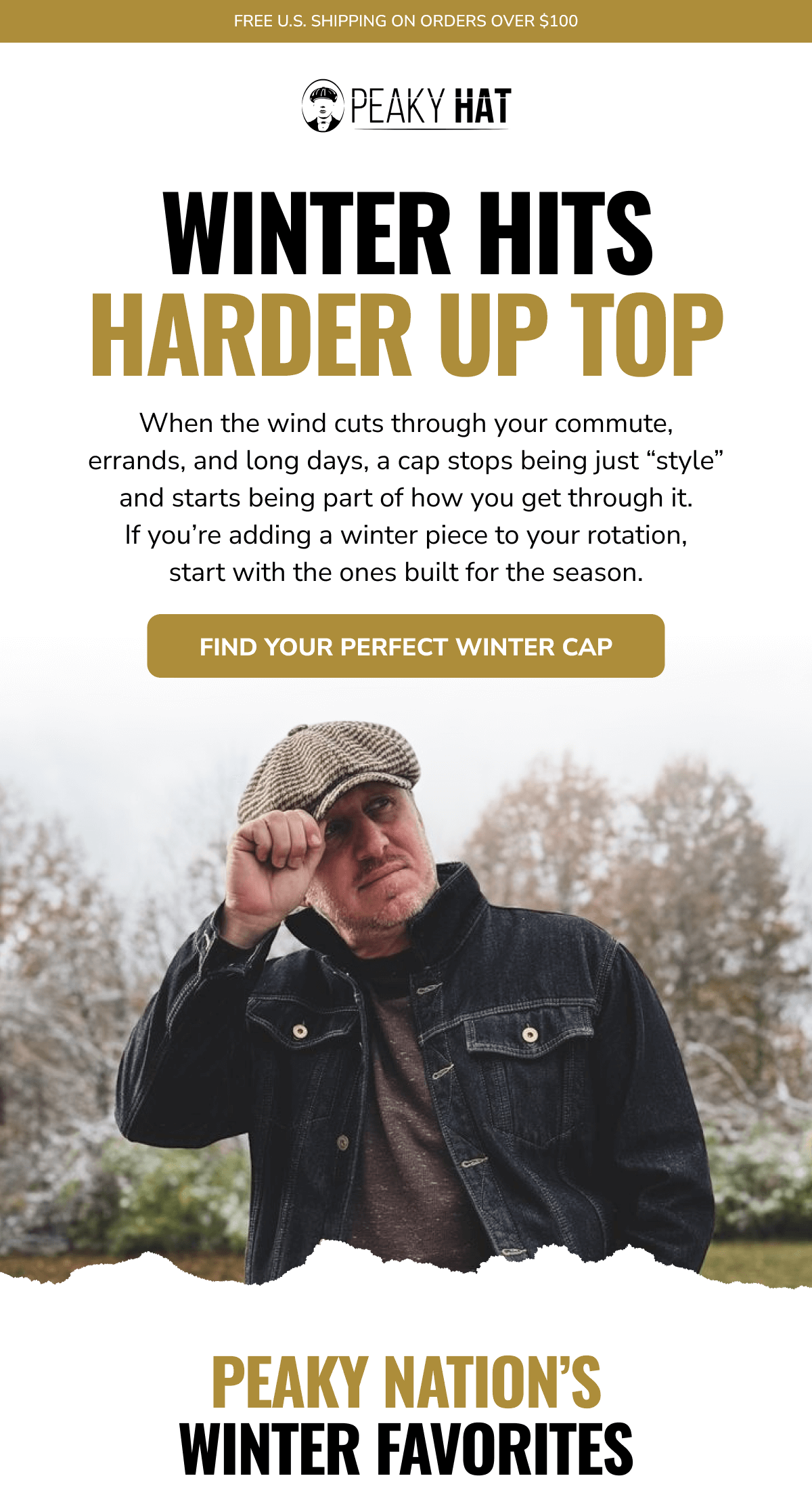 Made to Mean Something: Peaky Hat is more than a look - it's a story you wear. Inspired by heritage, designed for the present, and built to last, every hat we create carries character, craftsmanship, and connection. From premium materials to signature silhouettes, each piece is made with intention - to elevate your everyday, mark a moment, or honor a memory. Whether you're starting a new tradition or living out an old soul's dream, Peaky Hat is where classic spirit meets personal style. Promotional Terms & Conditions: All promotional offers are available for a limited time only, as noted. Offers cannot be combined with other discounts or applied to past purchases. Promotions hold no cash value and cannot be exchanged for cash or credit. Items marked Final Sale are not eligible for return, refund, or exchange. All returns and exchanges must comply with Peaky Hat's standard return policy. We reserve the right to update or withdraw promotions at any time without prior notice. Availability and pricing are subject to change based on inventory or other unforeseen circumstances. Peaky Hat | 5806 West War Memorial Drive, Unit B, Peoria, Illinois 61615 You're receiving this email because you opted in for updates, offers, and curated experiences from Peaky Hat. No longer want to receive these emails? Unsubscribe. | | | | |