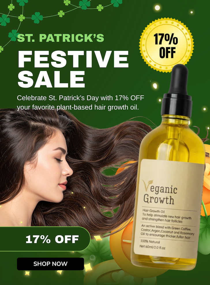 A Little Luck for Your Hair | | St. Patrick's Day is all about luck, celebration, and good fortune — and this year we're bringing a little luck to your hair routine too. For a limited time, enjoy 17% OFF Veganic Growth and give your hair the care it deserves. | | Powered by Plant-Based Ingredients | | Veganic Growth is crafted with carefully selected natural oils traditionally used to support hair and scalp health. | | | | |