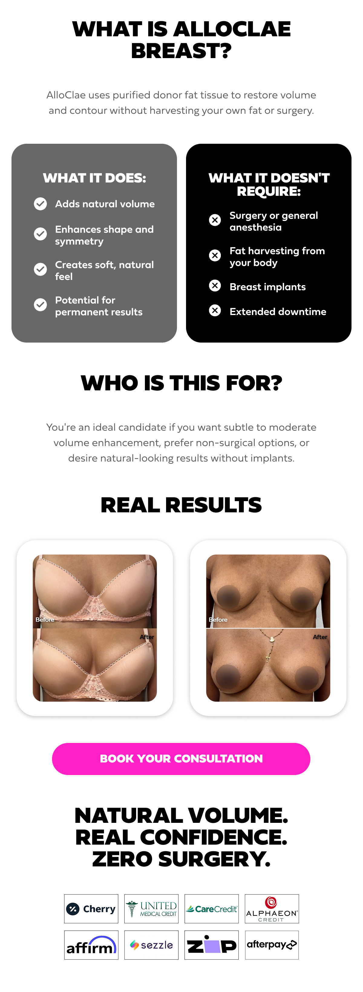 Hi beautiful, What if you could enhance your breasts without surgery, implants, or downtime? AlloClae Breast is the first FDA-cleared donor-derived fat injectable for natural volume and shape enhancement.
